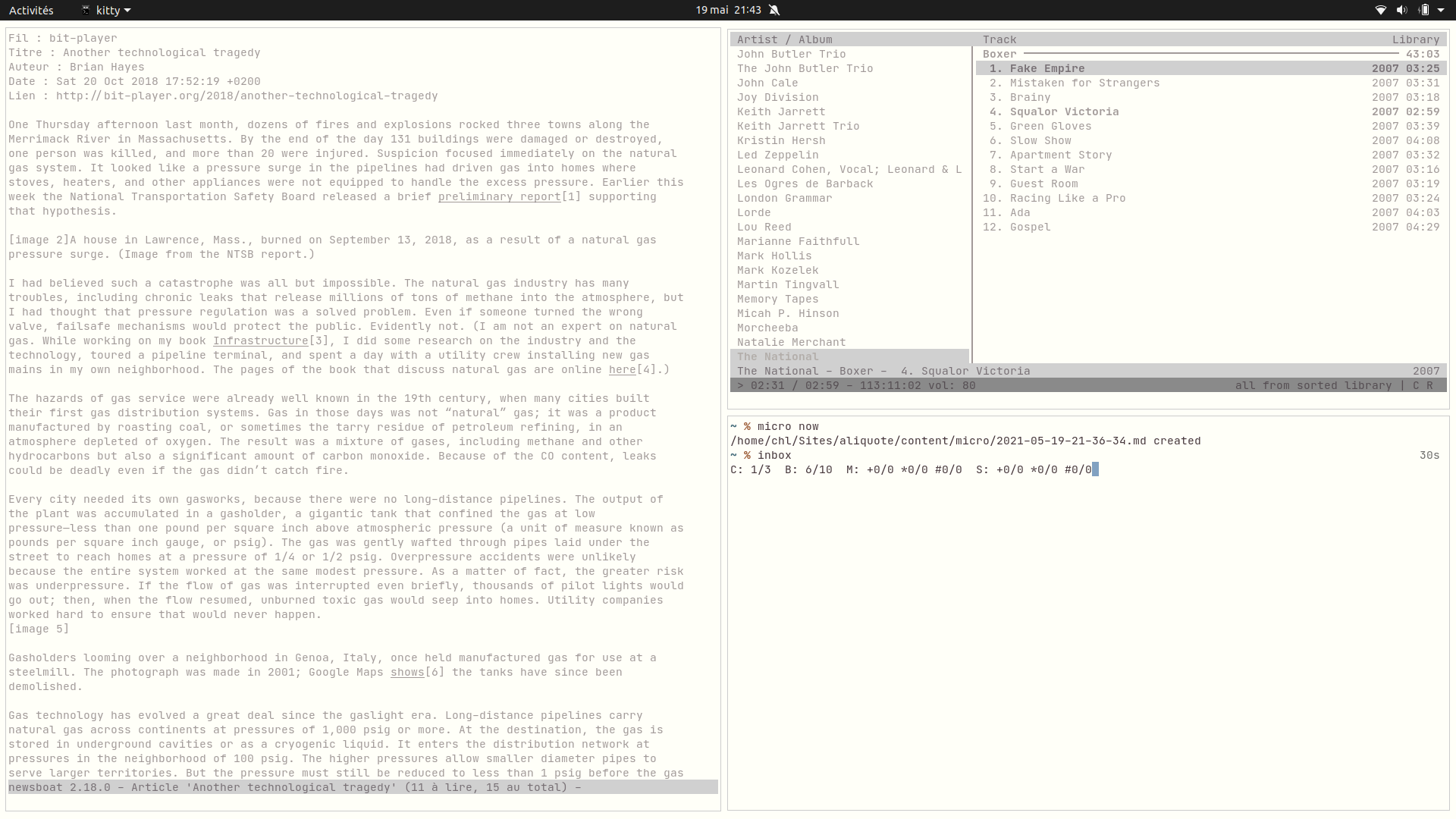 Cleaning up old stuff (again), bringing back my @aliquote.org email (see why), and listening to the album of the day on Bandcamp.