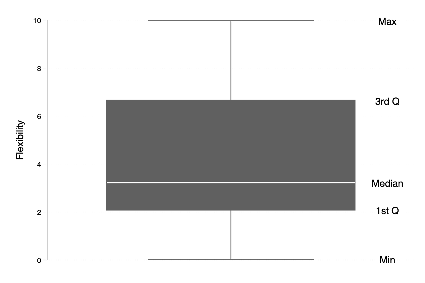 text(`r(min)' 95 "Min") text(`r(max)' 95 "Max") ///