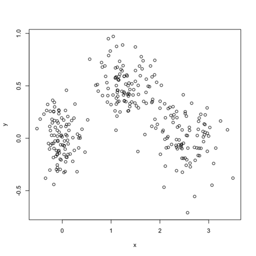 In what follows, I setup a simulation study where I look at the evolution of various validity indices, as well as the cophenetic correlation and average silhouette width following hierarchical clustering. My dataset consists in three well isolated clusters simulated on a 2D plane, as follows: