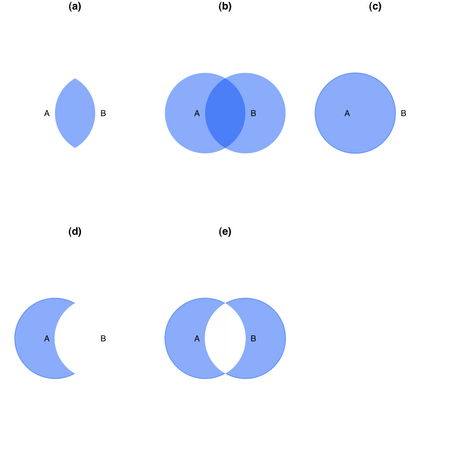 When browsing my Tweeter timeline yesterday, I just noticed a post by J.D. Long (@CMastication) who was referring to a nice way of illustrating SQL joins statements with Venn diagrams by Jeff Atwood. So I wonder how it could be reproduced in R.