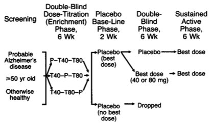 Most of my literature review started with Senn’s textbook, Statistical Issues in Drug Development (Wiley, 2007, pp. 317-336). Contrary to direct assays where we know what we want to achieve, say a given response to treatment, and we adjust the dose until this goal is reached, in indirect assays individual response is studied as a function of the dose and a ‘useful dose’ is decided upon afterwards. Studies on dose finding are generally done through between- or within-subject design. In within-patient design–dose escalation or cross-over–doses are given in ascending order, keeping in mind that within-patient titration share most of the problems of cross-over trials (see below), with additional limitations (dose and period effects are confounded) unless there’s a parallel placebo group or an intervening placebo treatment in the dose escalation sequence. In any case, there seems to be some agreement on the fact that within-patient designs (cross-over or dose escalation) usually perform better than any parallel-groups design.(1) However, the main difficulty with analyzing dose escalation studies is that it generally requires complex non-linear random-effects models which allow for drop-out to be used.
